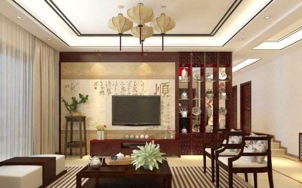 2. 中式装饰,对于天花板的装饰,采用方形,覆盖木板,或做环形天花板,用实木做框架,漆成梨木色。从家具的摆放来看,注重对称性,注重文化意义。在配饰的选择上,擅长书法、绘画、古董、盆景等装饰,更显主人的品味和高贵。