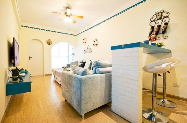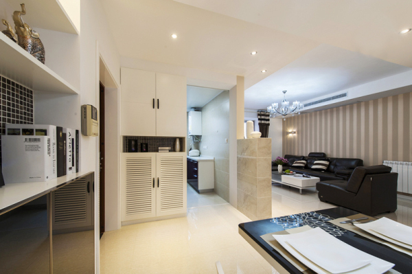 3.为了保证房间内每个功能区的独立性,您可以使用一些低柜和空心分区来分隔功能区。这是图片中的一个很好的例子。店主在沙发后面建了一个精致的酒吧。这是一个很好的分离空间,非常实用,时尚,设计非常好。