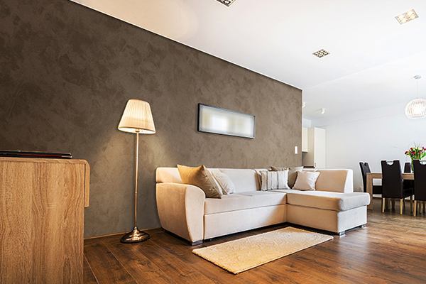 客餐厅开放,地面采用相同颜色的木地面,使整体空间更加开放,客厅连接阳台,照明面大,使室内透明明亮,客厅放置一盆绿色植物,也能发挥很好的装饰作用。